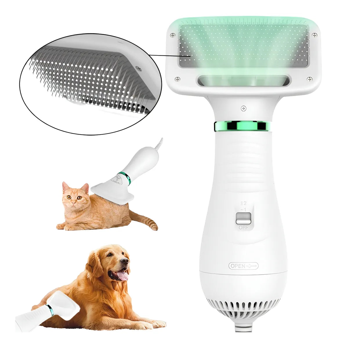 Este cepillo secador para mascotas combina cepillado y secado en un solo paso, facilitando la eliminación del pelo muerto o sucio.