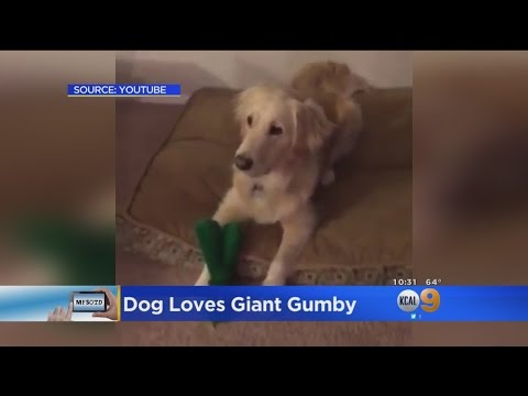 El juguete para perros que se hizo viral después de que un humano se disfrace de una version gigante del Gumby para sorprender a la mascota de su novia.